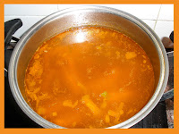 Cuando ya esté hay que añadir el caldo, pero la medida del mismo es la misma proporción que de pasta, por cada vaso de pasta, un vaso de caldo.